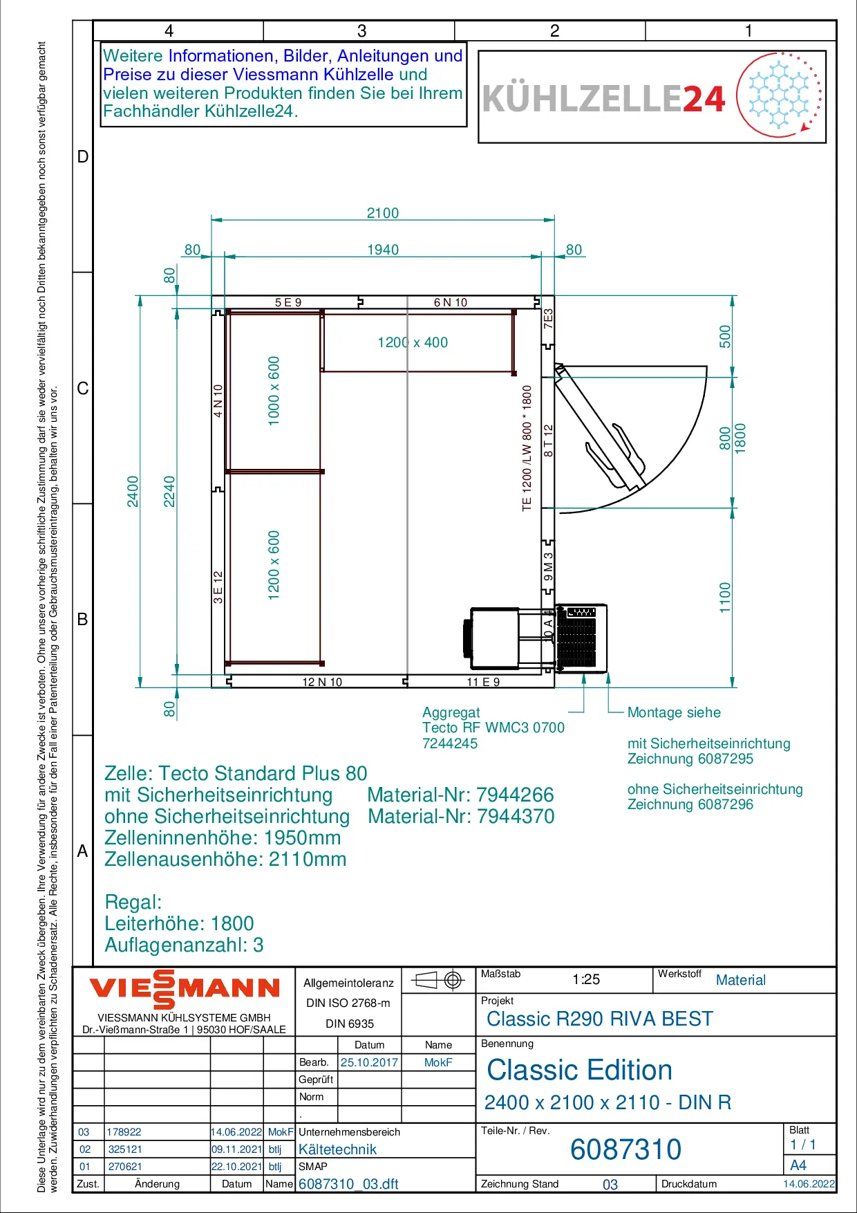 - Technische Zeichnung Tiefkühlzelle TectoCell